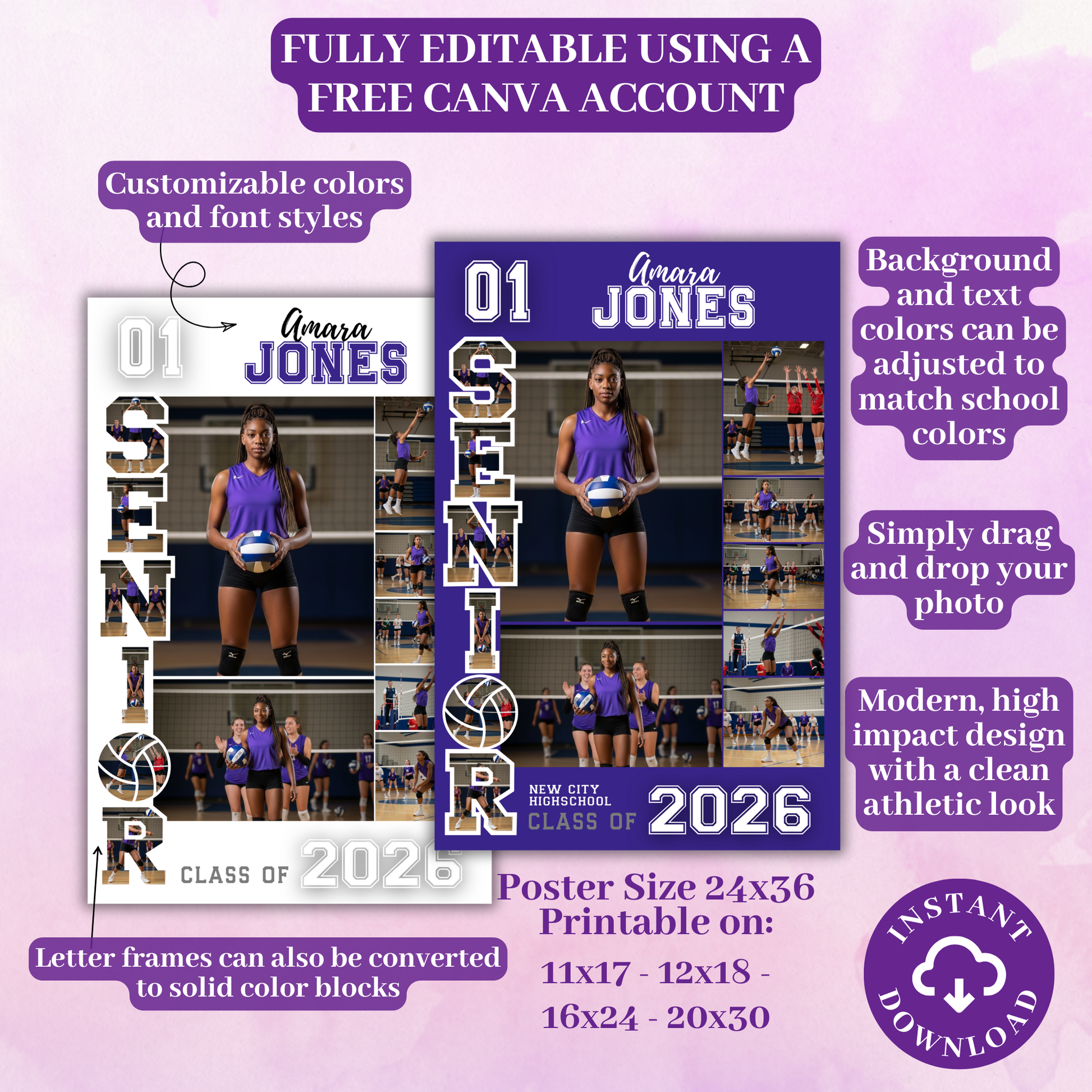 Senior Night Volleyball Poster Template - Digital Download Customizable Senior Volleyball Poster